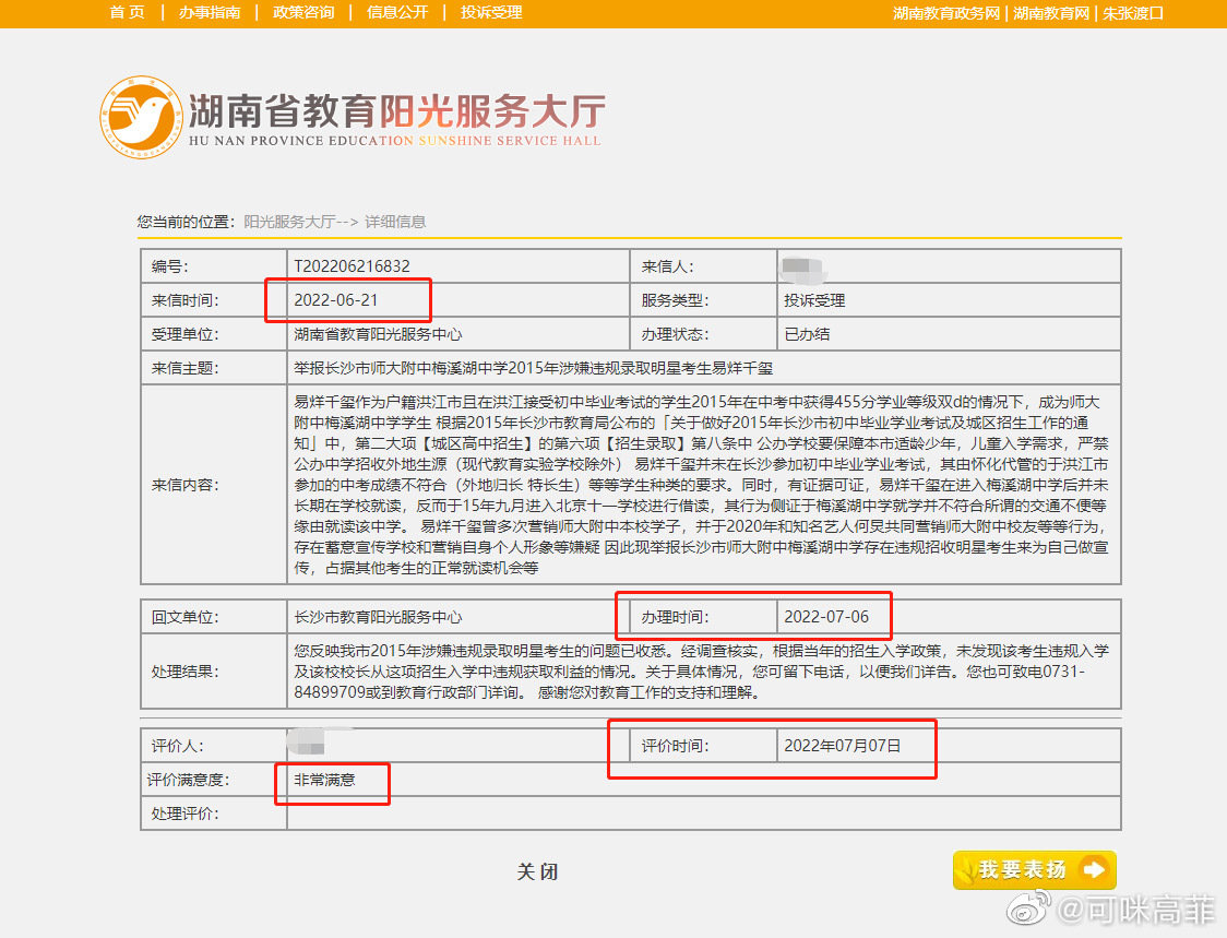直接还给你写了评价“非常满意”原投诉人表示一脸懵逼