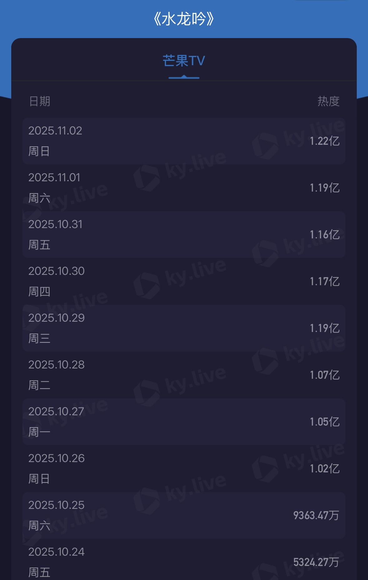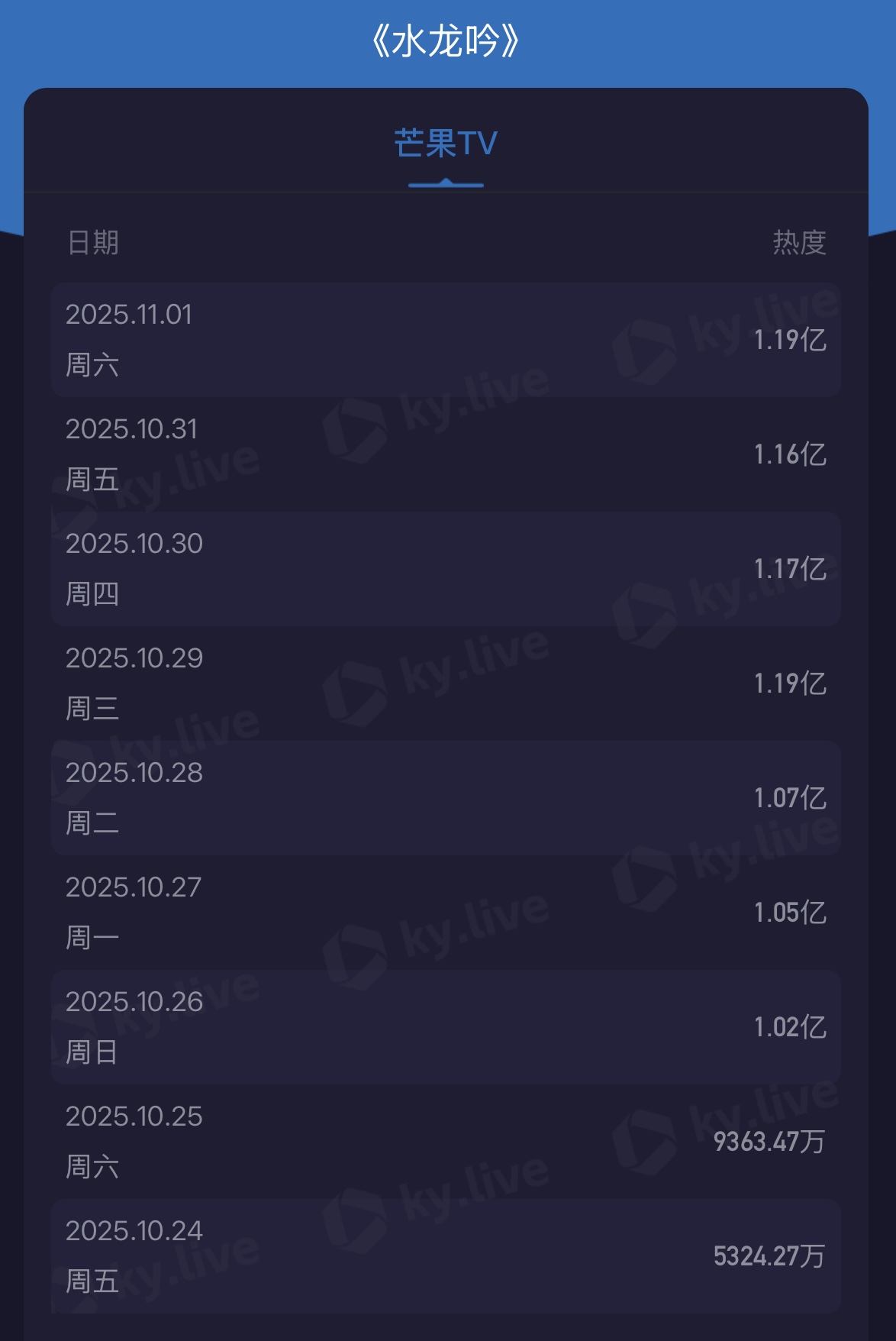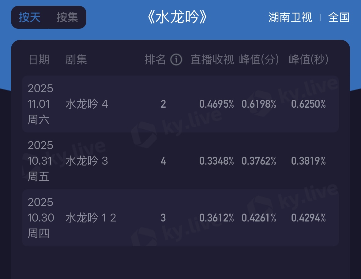 | 我觉得水龙吟收视趋势很好的原因,除了数值之外呢,主要是第1天的第1集,他跟生万物跟凡人是同时段的时候,他是被那两部剧压着的。到了昨天虽然说绝对值下降了,但是呢,他已经是跟那两部剧是一种缠斗的状态,不是像第1天是被压着的状态了,我已经觉得趋势向好,今天他一直都压着那两部剧,所以我就觉得这个趋势非常好 |