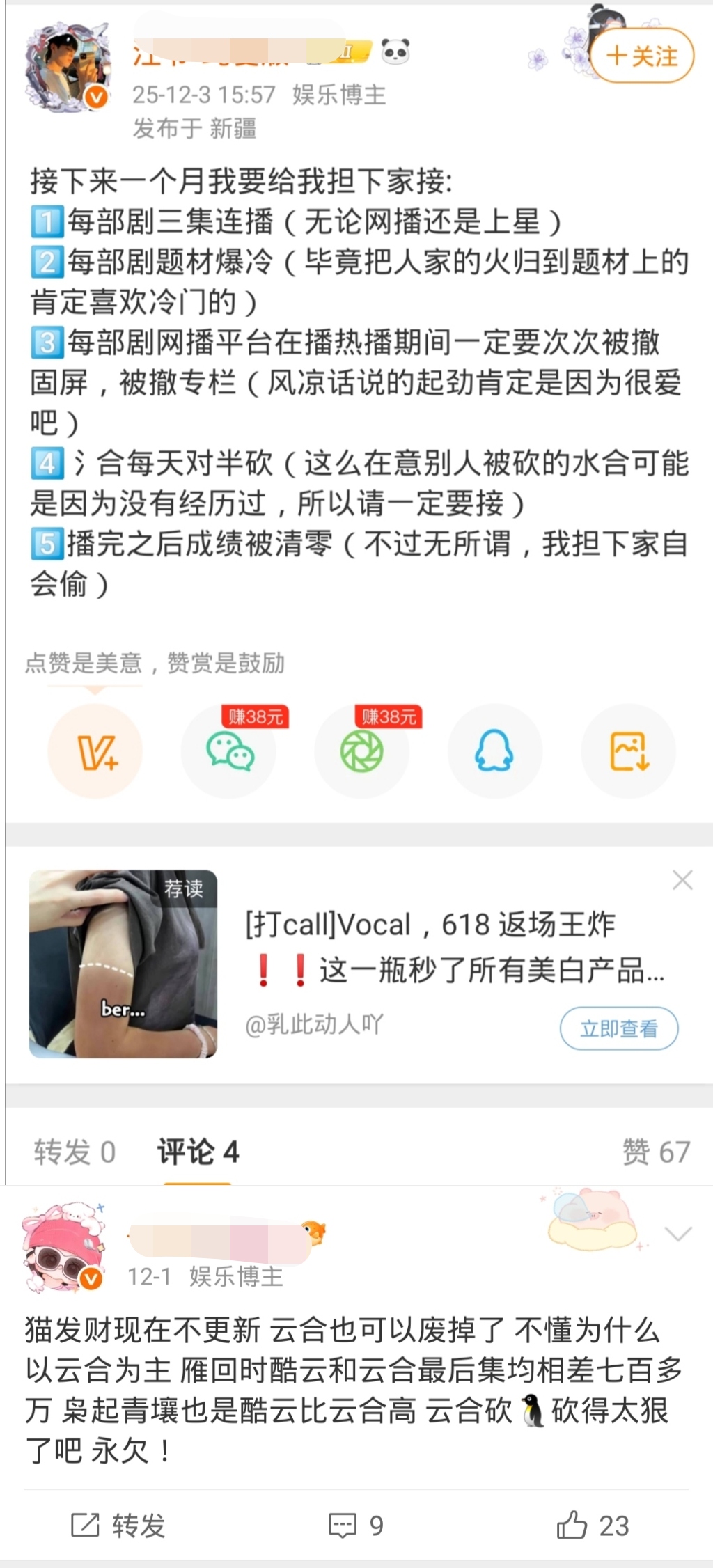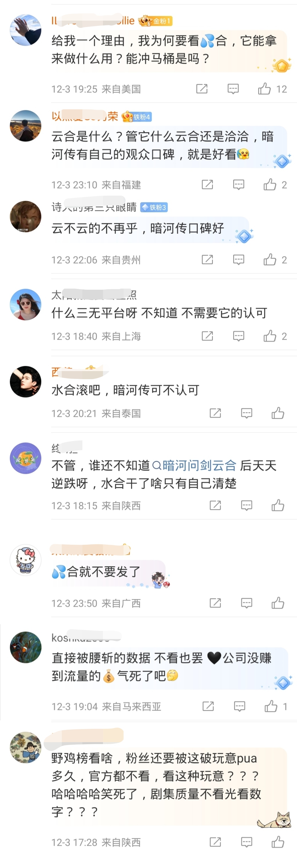 月宫慕琼枝 发表于 2025-12-4 15:41 你们真操心,反正云合本来就不官方也不真实,不过是被有心组织炒作起来的拉踩工具,有啥权威性可言啊。 经 ...