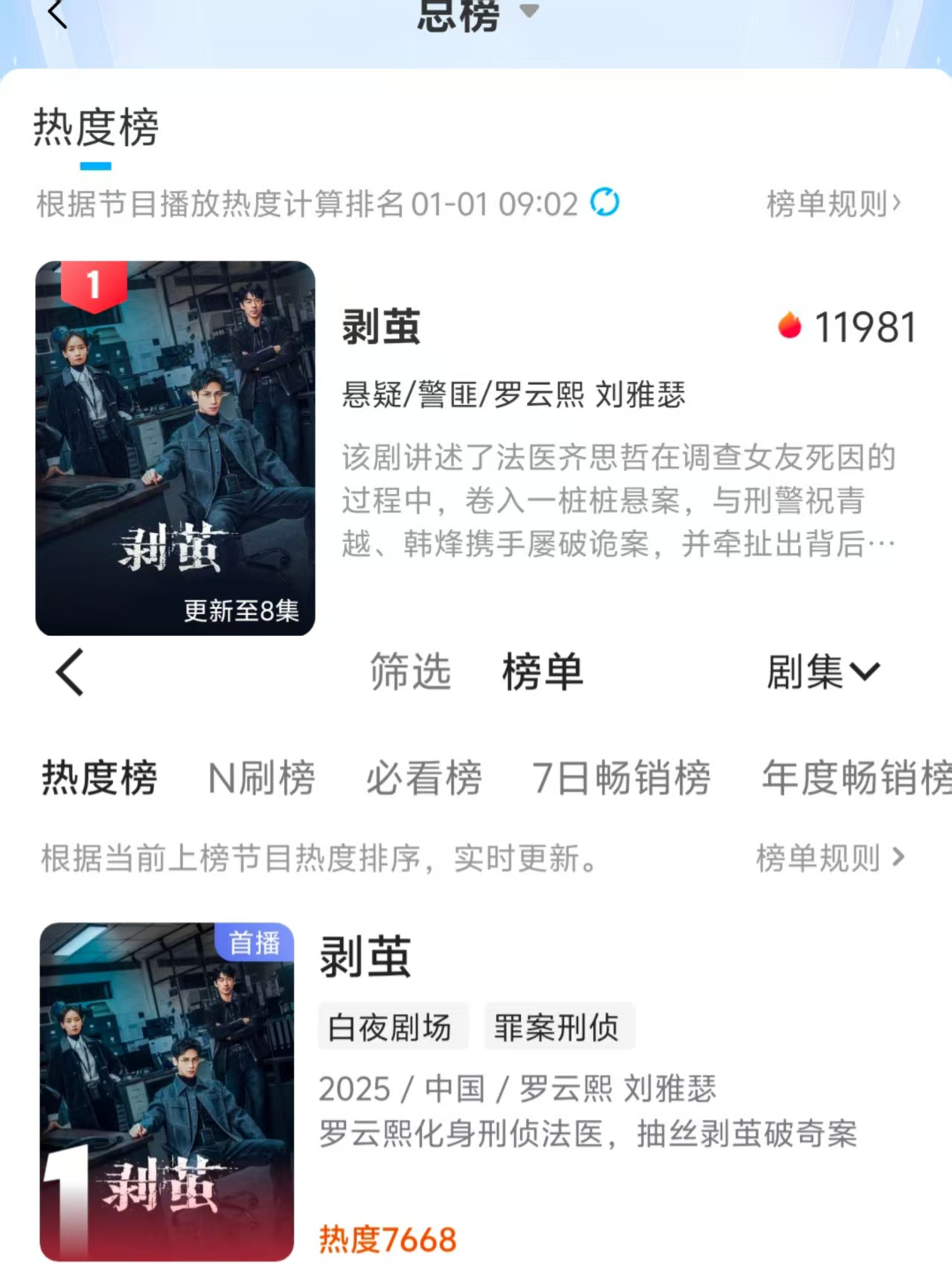 看完第八集,刚想十多个人的尸骸案得是多大的惊天大案,下面马上来了个标本换真尸。等不及想看下一集了。 在我这儿,剥茧就是罗云熙的top1剧集。到目前为止,编,导,演没有太拉胯的。尤其是这个导演,把罗云熙拍的太帅了,比所有的偶像剧都更帅更有味道,以前的那些现代剧真是暴殄天物了。个人血书,赶紧拍第二季。 |