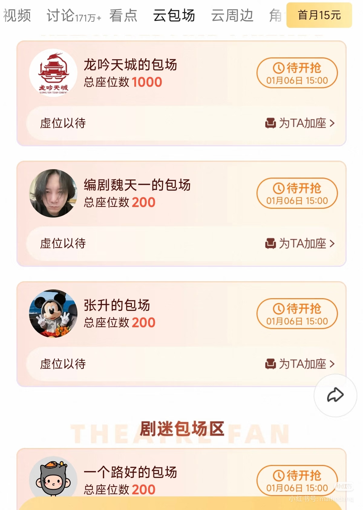 我在小红书刷到这几个都是今天下午3点开抢的新云包场,不是旧的