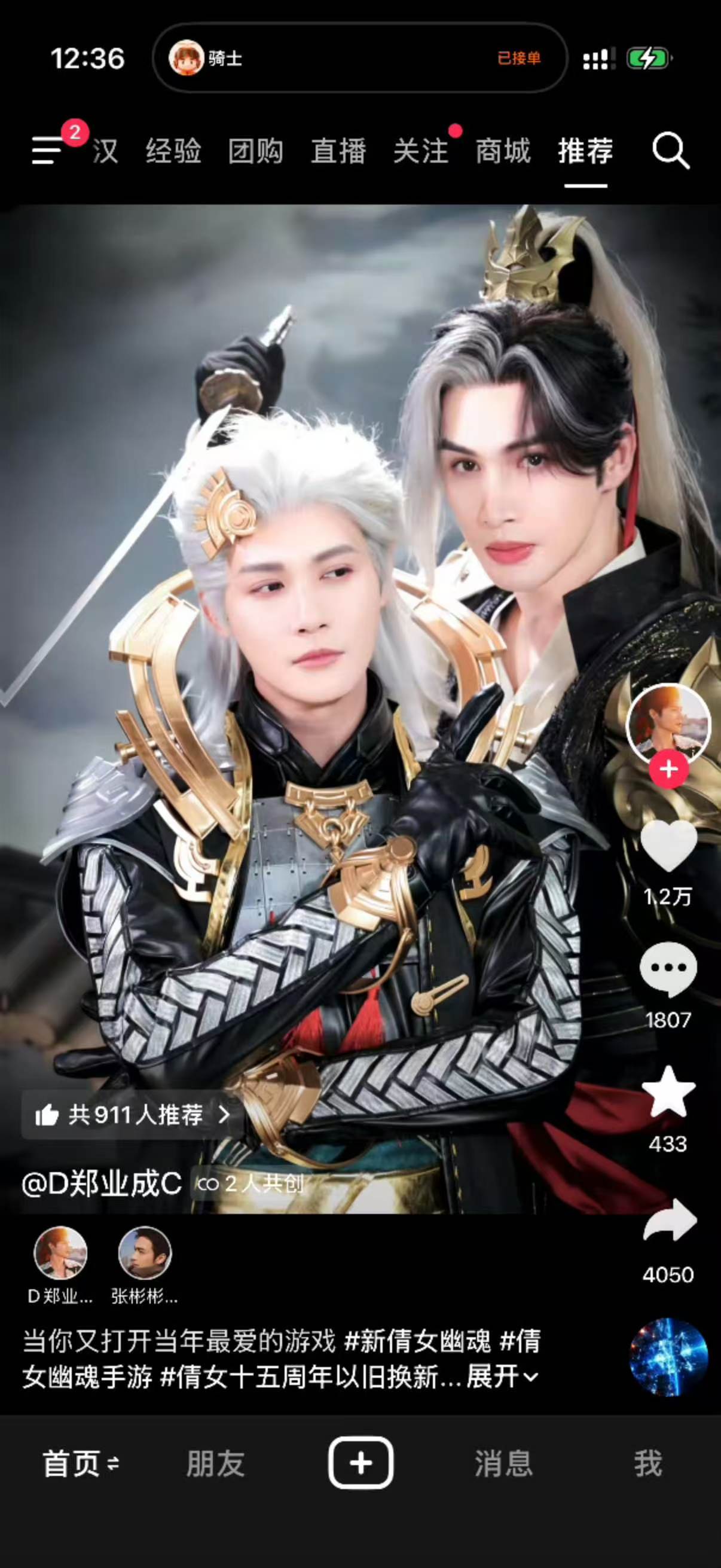 好奇去抖音搜索看看,倩女大力推流这个CP,已经四十三万点赞了。