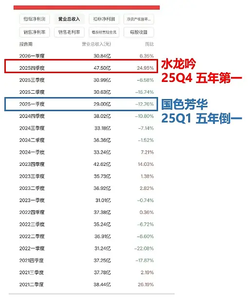 不止近5年,看到一张从16年到26年q1的表,25年q4的47.5亿最高;而25年q1的29亿,从20年q2开始共6年24季,倒一